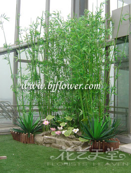 竹丛可配仿真剑麻、黄杨球等组景