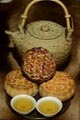 ![]() 中秋吃月饼。最先见于苏东坡的“小饼如嚼月,中有酥与饴"之句。唐和五代时赏月的食品只见有“玩月羹”等,未见有月饼。 |