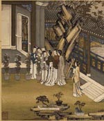 古时汉族的中秋宴俗,以宫廷最为精雅。如明代宫廷时兴吃螃蟹。螃蟹用蒲包蒸熟后,众人围坐品尝,佐以酒醋。食毕饮苏叶汤,并用之洗手。宴桌区周,摆满鲜花、大石榴以及其他时鲜,演出中秋的神话戏曲。清宫多在某一院内向东放一架屏风,屏风两侧搁置鸡冠花、毛豆技、芋头、花生、萝卜、鲜藕。屏风前设一张八仙桌,上置一个特大的月饼,四周缀满糕点和瓜果。祭月完毕,按皇家人口将月饼切作若干块,每人象征性地尝一口,名曰“吃团圆饼”。清宫月饼之大,令人难以想象。像末代皇帝溥仪赏给总管内务大臣绍英的一个月饼,便是“径约二尺许,重约二十斤”。 |