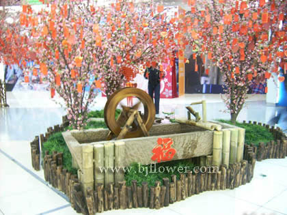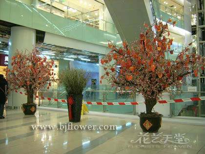 花艺天堂专业制作春节装饰许愿树景观,欢迎与我们联系! 许愿树可以单独摆放,也可以制作成大型综合景观,成为公共场所吸引客流量的重要装饰之一。